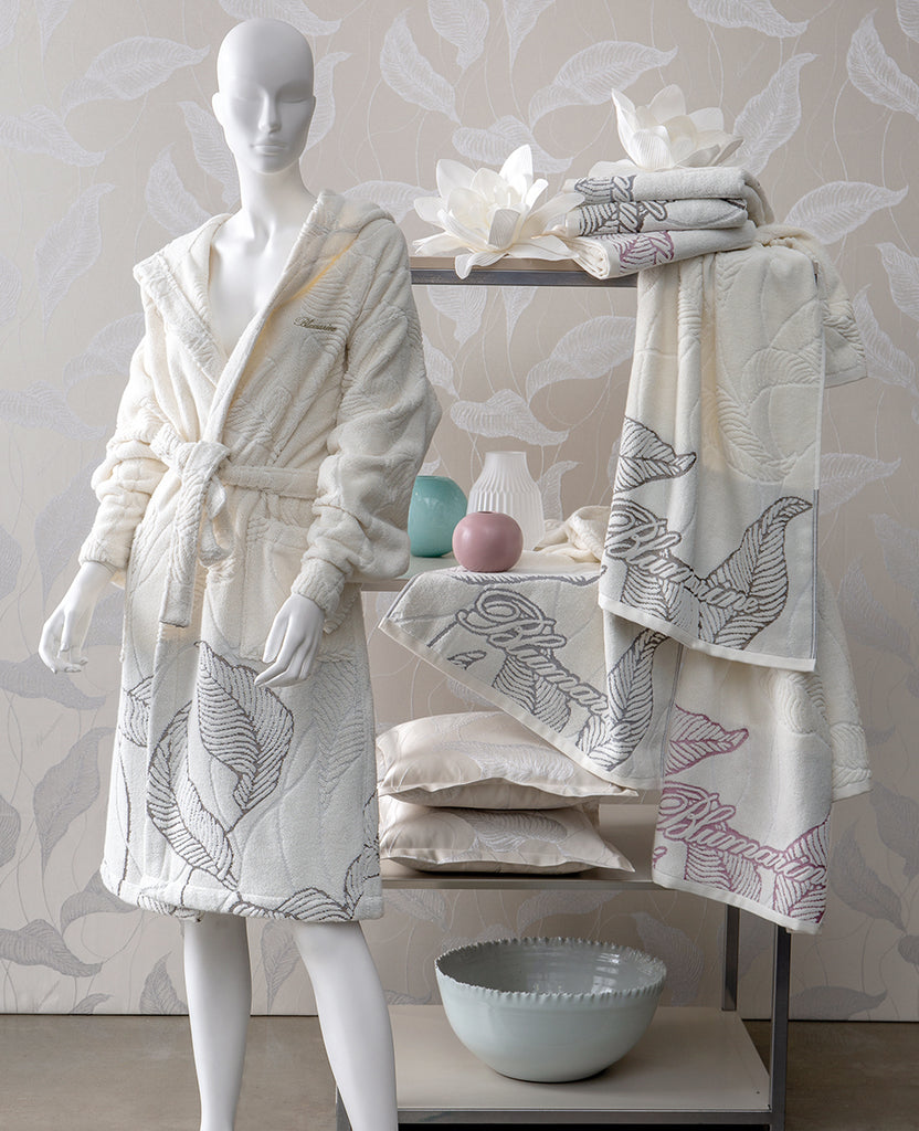 Accappatoio con cappuccio e logo Blumarine in strass Swarovski. Taglie S, M, L Tessuto: cotone idrofilo 450 gr/mq