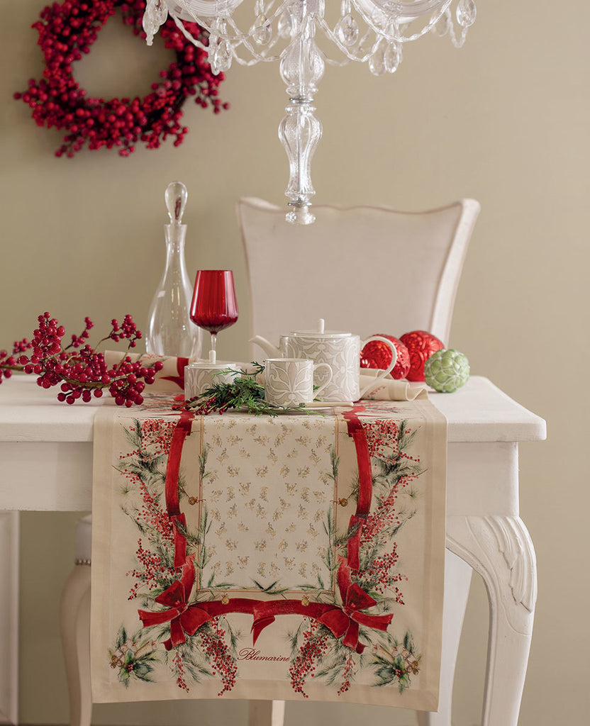Runner in lino con stampa piazzata e logo Blumarine presente nella trama. Misure: 50x150 cmTessuto: 100% lino Confezione scatolaMade in Italy