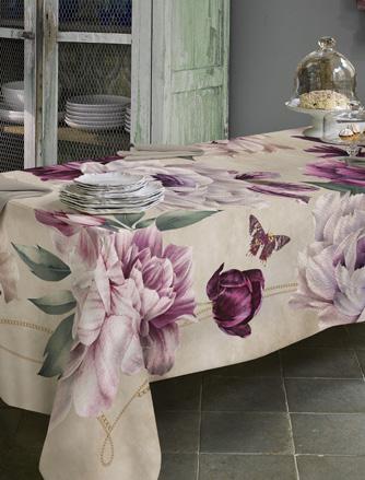 Tovaglia in drill di puro cotone 100%. Tessitura Randi. Made in italy. Stampato in digitale con colori reattivi resistenti ai lavaggi. Splendida fantasia floreale nelle tonalità del rosa. Misura 150*220