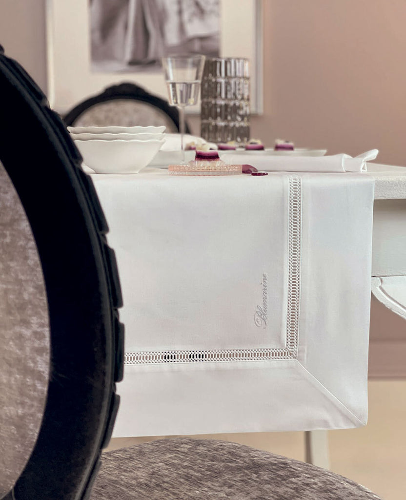 Runner tinta unita in misto cotone rifinita con gigliuccio e logo Blumarine ricamato.Misura: 50x150 cmTessuto: 70% cotone, 30% poliestere
