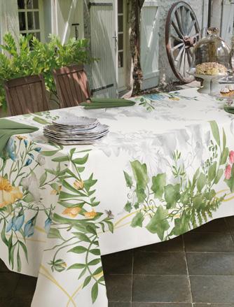 Tovaglia in tessuto riciclato 14% lino 86% Cotone Stampa digitale Macro disegni per la tovaglia e micro per i tovaglioli. Misura 180*360 + 18 tovaglioli Confezione scatola cartone riciclato. Nuova Collezione sostenibile