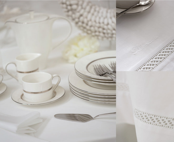 Copritavolo tinta unita in misto cotone rifinita con entre-deux e logo Blumarine ricamato.