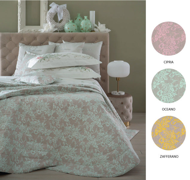 Copriletto matrimoniale liscio non trapuntato in jacquard tinto in filo con logo Blumarine in cristalli.Misure: 270x270 cmTessuto sopra: 70% poliestere 30% cotoneMade in Italy
