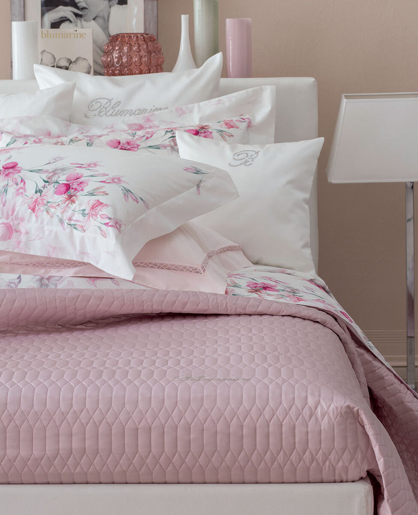 Copriletto trapuntato per letto singolo in percalle tinta unita.Logo in cristalli.Composizione:Tessuto sopra: 100% percalle di cotone tinta unitaTessuto sotto: 100% cotoneImbottitura: 100% poliestere 90 g/mqMisura: 180x270 cmMade in Italy