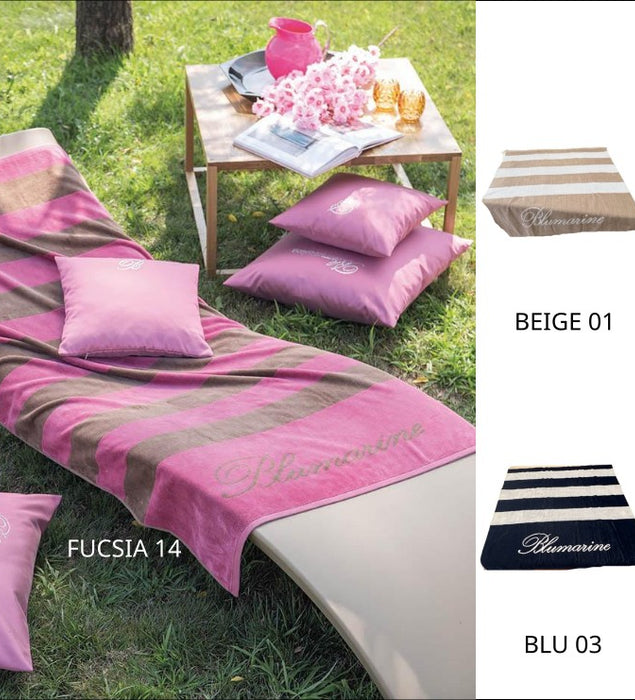Telo mare in velour tinto in filo con logo Blumarine jacquard piazzato, retro in spugna riccio.Misure: 100x180 cmTessuto: 100% cotone idrofilo 400 g/mq