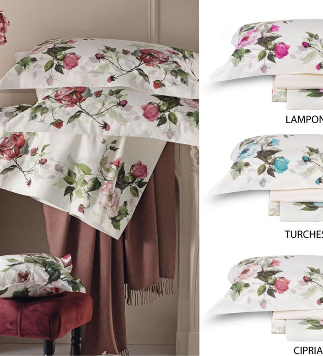 Completo Lenzuola matrimoniale con stampa piazzata su federe a 3 volani e sul lenzuolo sopra, lenzuolo sotto in percalle di cotone tinta unita, logo Blumarine stampato nel tessuto. Lenzuolo sopra: 250x290 cmLenzuolo sotto: con angoli...