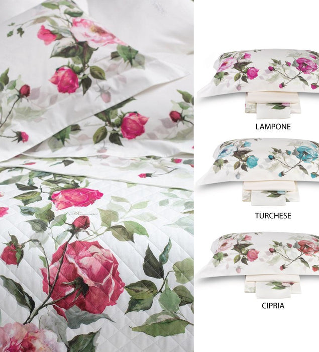 Trapunta matrimoniale con stampa rose all over e logo Blumarine stampato nel tessuto. Tessuto sopra: 100% percalle di cotone Tessuto sotto: 100% cotone Imbottitura: 100% poliestere, 90 g/mq Made in Italy