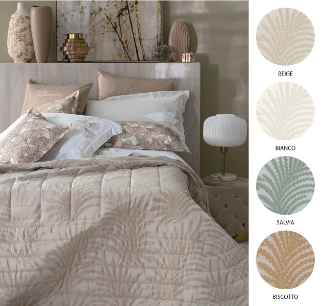 Trapunta matrimoniale in raso di cotone con stampa all over.Misure: 270x265 cmTessuto sopra: 100% raso di cotone stampato 300 TCTessuto sotto: 100% cotoneImbottitura: 100% poliestere 340 g/mqMade in Italy