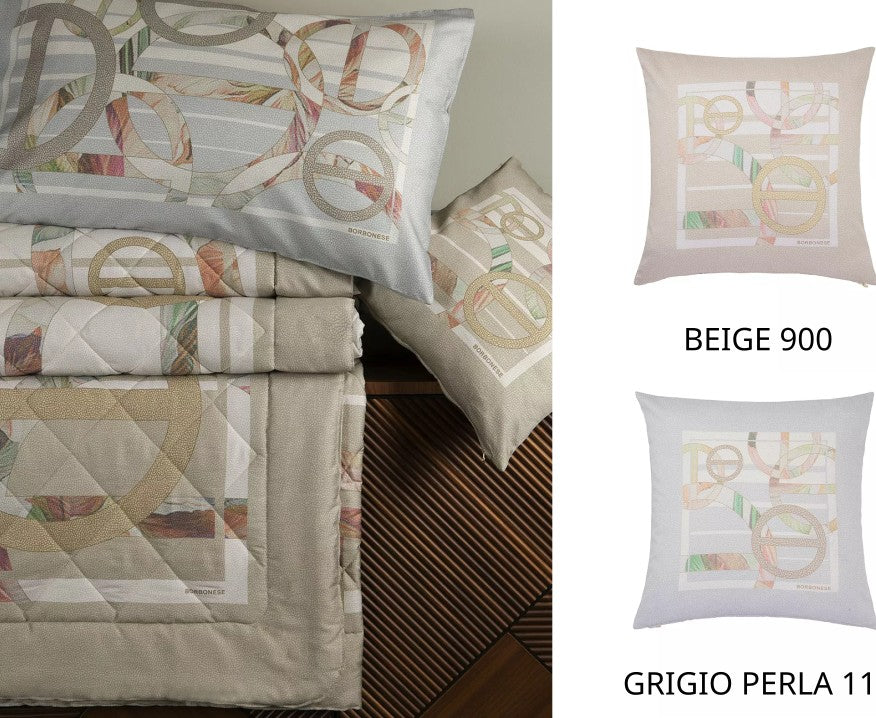 Cuscino arredo realizzato in raso di puro cotone 300 T.C. Il cuscino è stampato in digitale fronte e retro con disegno piazzato. Confezionato con zip e cursore personalizzato Borbonese, comodamente sfoderabile. La soffice imbottitura è...