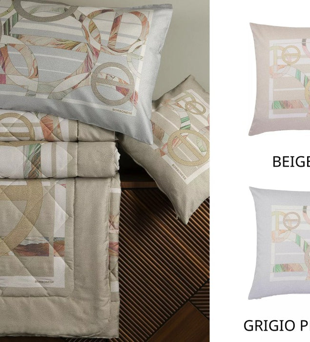 Cuscino arredo realizzato in raso di puro cotone 300 T.C. Il cuscino è stampato in digitale fronte e retro con disegno piazzato. Confezionato con zip e cursore personalizzato Borbonese, comodamente sfoderabile. La soffice imbottitura è...
