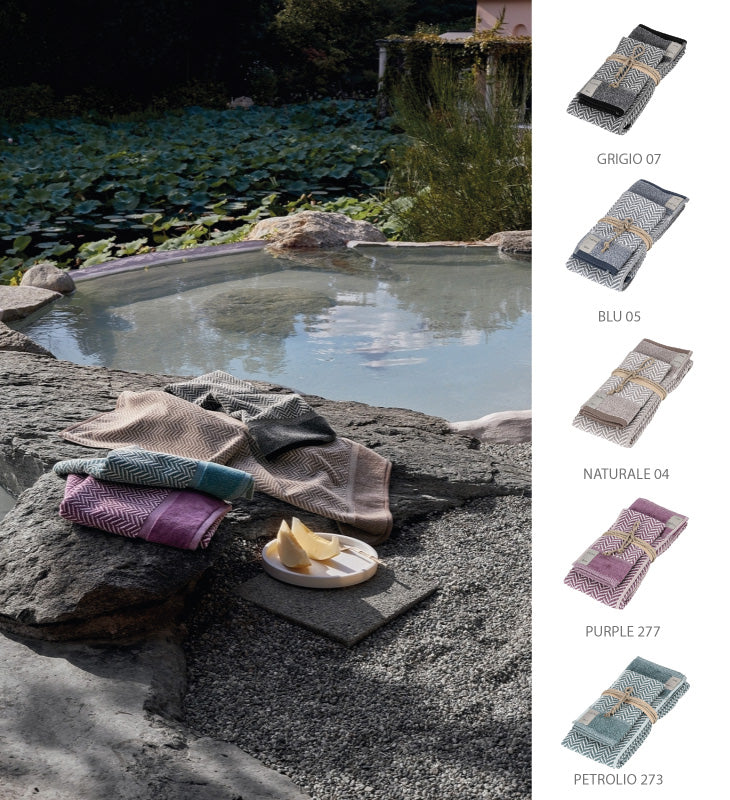 Spugna 500 gr/mq tinta in filo, melange.Coppia (1+1) ospite 38x50 cm e asciugamano 50x110 cm