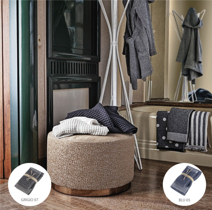 Spugna 500 gr/m2 tinta in filo, mélange. Ospite 38x50 cm e asciugamano 50x110 cm