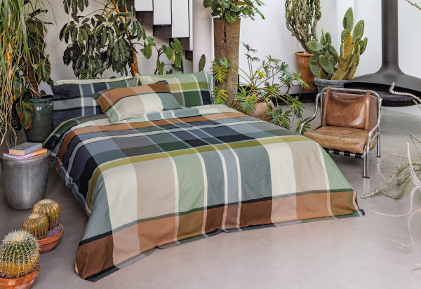 Completo copripiumino matrimoniale con stampa animalier all over su federe e sopra sacca copripiumino, lenzuolo sotto in raso di cotone tinta unita.Set 4 pezzi composto da:1 sacca copripiumino 250x200 cm2 federe a 3 volani 50x80...
