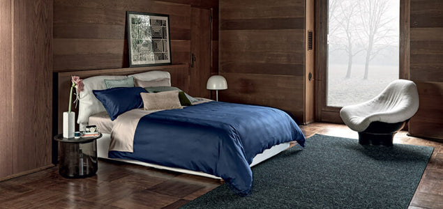 Completo Copripiumino Ulisse - Un maxi-rigato dal disegno tridimensionale con Ulisse, il nuovo completo copripiumino matrimoniale della Collezione Oscar di Somma 1867, stampato su raffinato raso di puro cotone 120 fili cm/q. Composto da sacco...