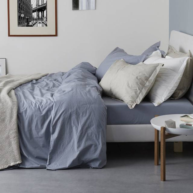 Completo copripiumino in 100% percalle di puro cotone biologico in tessuto organico certificato GOTS, tinta unita effetto stropicciato Realizati in modo eco-sostenibile. Federe a 4 piccoli volani Etichetta logo Somma applicata sulle federe. Misure: sacco...