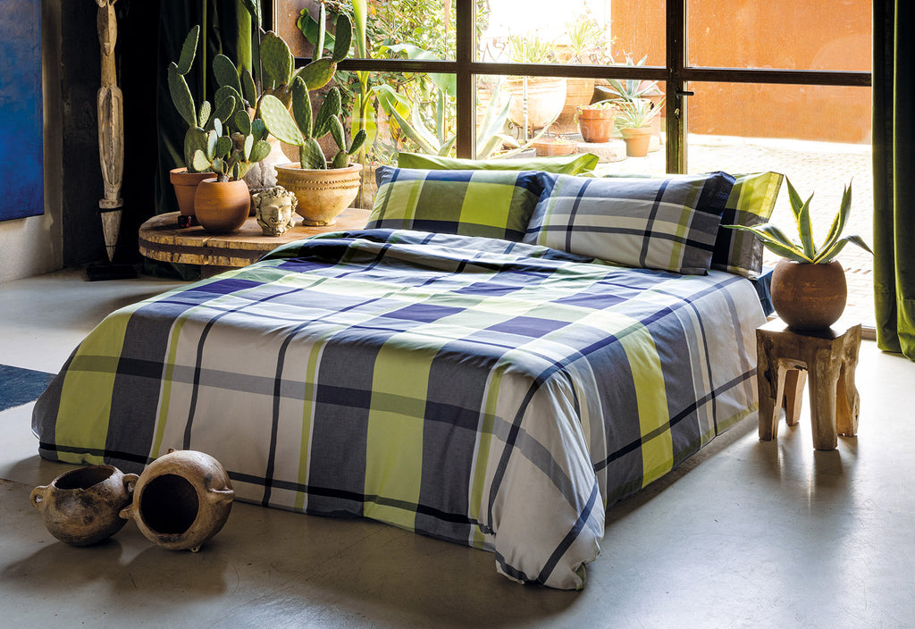 Parure copripiumino in percalle di 100% cotone tinto in filo, che lo rende piacevole al tatto e resistente nel tempo. Cotone pettinato eliminando le fibre più corte e rendendo il tessuto più omogeneo e morbido...