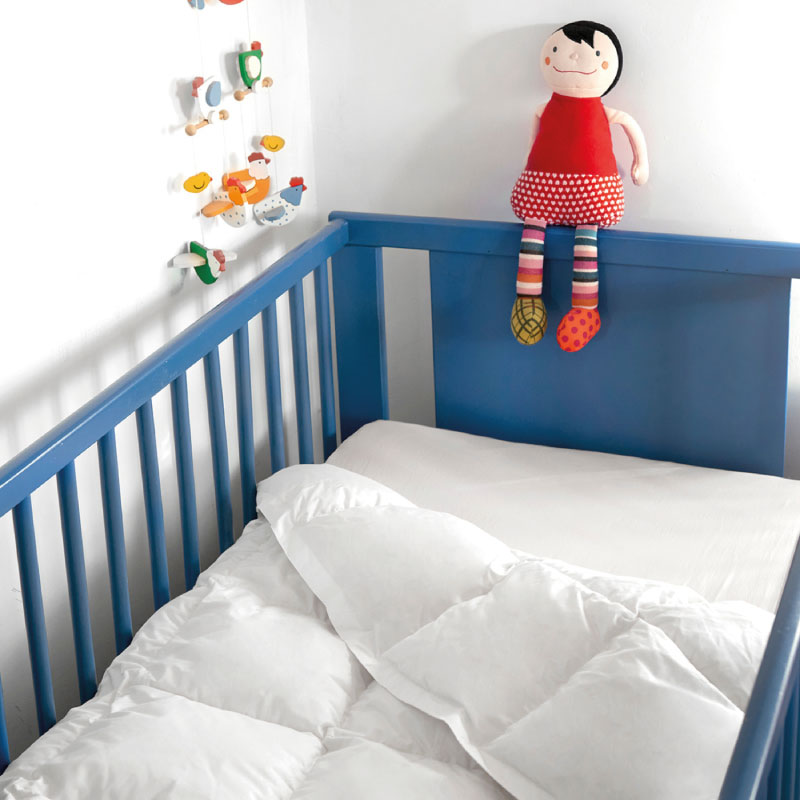 Piumini per lettini per assicurare un sonno sano ai piccoli di casa. Pesantezza Classic winterMisura 100*135Imbottitura 100% Piumino 730 filling powerTessuto rivestimento 100% Batista soft cotone