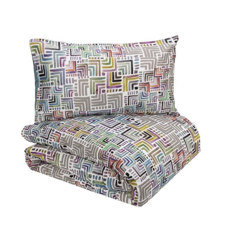 La parure copripiumino Geometrie è realizzata in puro cotone, perfetta per un ambiente giovane e dinamico.