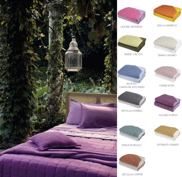 Percalle di puro cotone Trapuntato a capo, è rifinito a mano con due angoli sagomati.Dimensioni:1 piazza e mezza: 220x270 cmUn quilt in tinta unita che dona raffinato movimento al colore proprio della collezione. I quilt...
