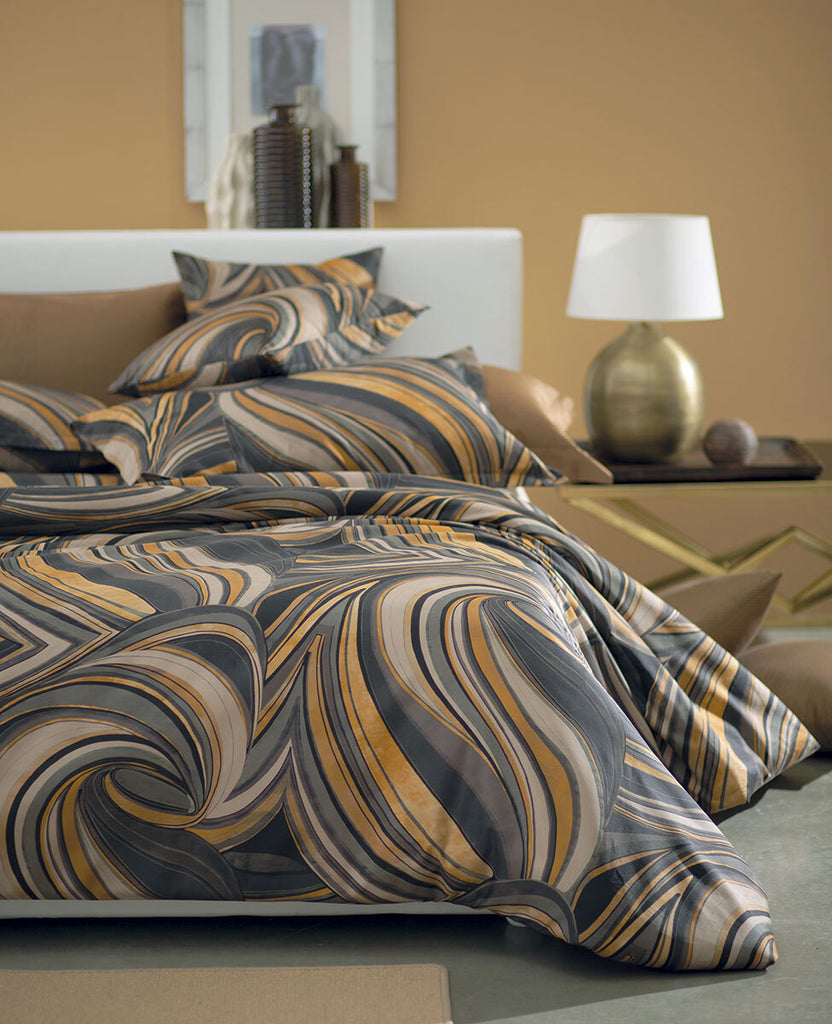 Completo copripiumino matrimoniale in raso di cotone stampato con sottosacca e lenzuolo sotto in raso tinta unita.Set 4 pezzi composto da: 1 sacca copripiumino 250x200 cm 2 federe 50x80 cm a 4 volani 1 lenzuolo...