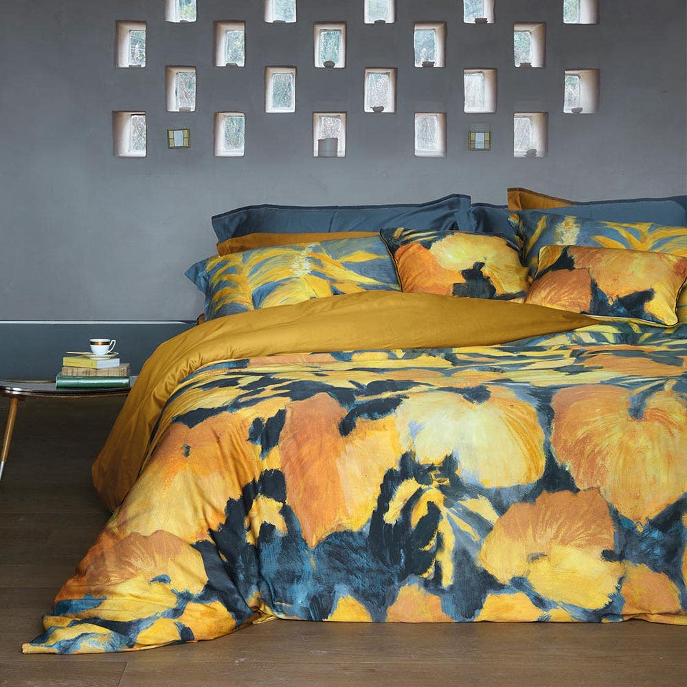 Completo Copripiumino Notturno - Un trionfo floreale con Notturno, il completo copripiumino della Collezione Suites, Pittura da Camera di Somma 1867. Tinto e stampato su raso mercerizzato da 120 fili/cmq, restituisce una mano cascante ed estremamente morbida. Disponibile esclusivamente nella dimensione matrimoniale 250x205 è composto da sacco copripiumino in raso sopra stampato e sotto tinta unita, coppia di federe a tre volani stampate e sottolenzuolo tinta unita con angoli 175x200. La collezione è realizzata in collaborazione con la designer Elena Carozzi, dove l'osservatore è immerso in un mondo pittorico a grandezza naturale.