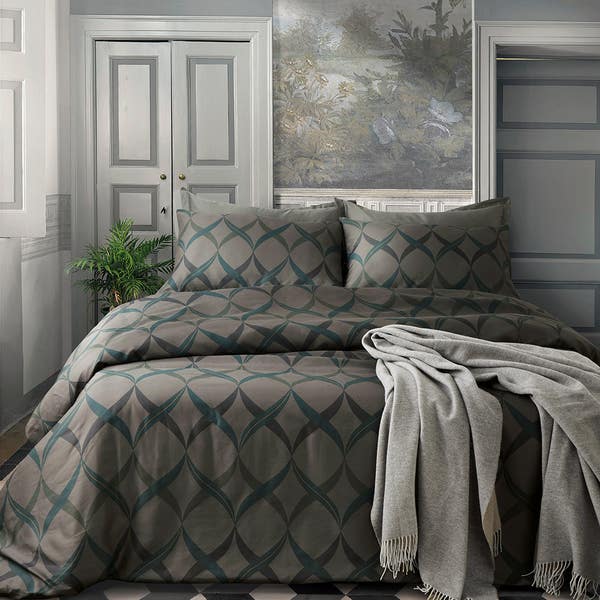 Completo Copripiumino Incanto - Un delicato pattern geometrico dalla forte personalità con Incanto, il nuovo completo copripiumino della Collezione Impero di Somma 1867. Tinto e stampato su raso mercerizzato da 120 fili/cmq, è composto da...