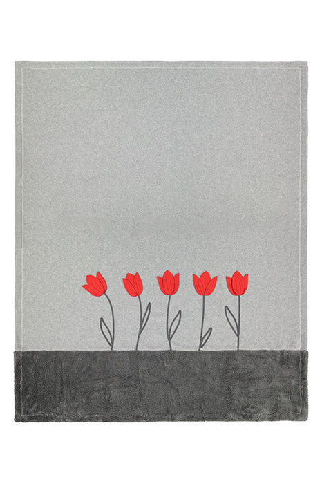 Morbido plaid in caldo pile con fascia in pelliccetta in contrasto colore con fiori laserati ed applicati. Misura 150X180 cm. Composizione: 100% PL. Lavaggio: in macchina ciclo delicato.