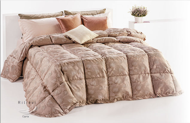 Trapunta in piumino d'oca a quadri fissi tessuto jacquard.Confezionamento: Trapuntatura a quadri chiusi e angoli ai piedi arrotondatiImbottitura: 90% piumino e 10% piumettaTessuto: Lato superiore:100% Poliestere , Lato inferiore: 100% cotone InlettPesantezza Invernale 250 gr/mqFilling...