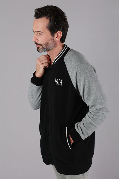 Giacca da camera full zip dal gusto sportivo in pile ottima per la stagione fredda e le domeniche mattina di puro relax in casa oppure in viaggio. Bomber bicolore con collo con righe smacchinate e...