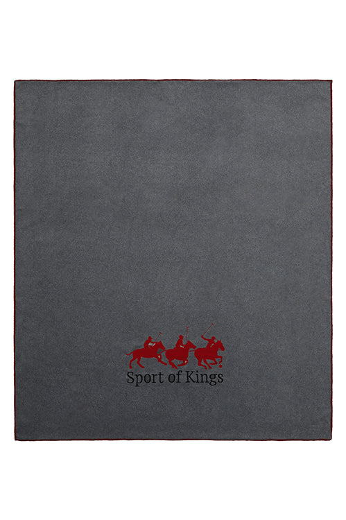 Morbido plaid in caldo pile dal gusto sportivo con giocatori di polo aplicati e ricamati. Misura 160×180 cm. Composizione: 100%PL. Lavaggio: in macchina ciclo delicato.