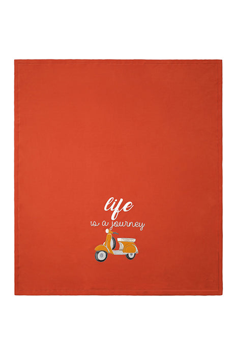 Morbido plaid in caldo pile dal gusto un po¿ retrò con vespa applicata in vari materiali e ricamata. Misura 160×180 cm. Composizione: 100%PL. Lavaggio: in macchina ciclo delicato.
