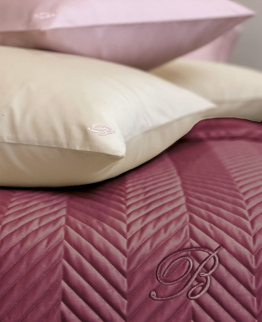 Copriletto matrimoniale trapuntato in percalle di cotone tinta unita, monogramma B ricamato con effetto tridimensionale.Misure: 270x270 cmTessuto sopra: 100% percalle di cotone 200 TCTessuto sotto: 100% cotoneImbottitura: 100% poliestere 90 g/mq
