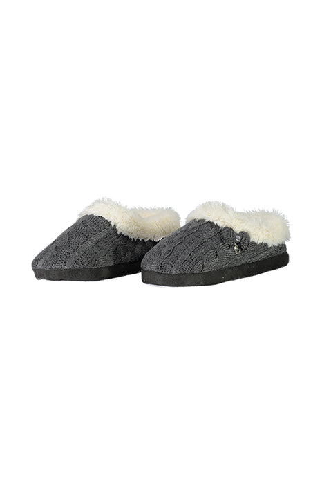 Pantofola in maglieria tricot lavorata a losanghe foderata in soffice e calda pelliccetta in contrasto colore. La suola è stampata antiscivolo.