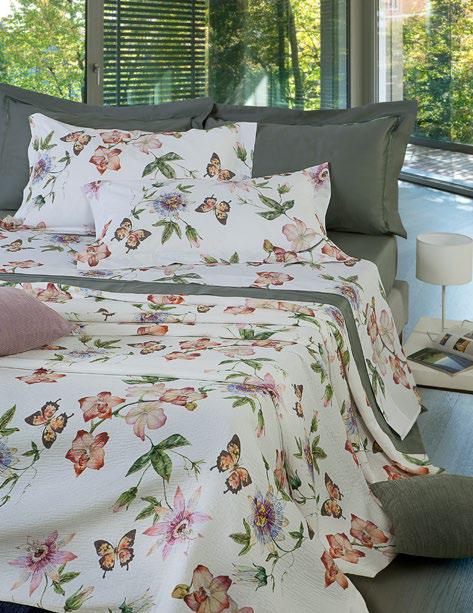 Anthos, la trapunta matrimoniale della Collezione Oscar di Somma 1867, realizzata su raso di puro cotone 120 fili cm/q con stampa digitale. Sopra stampa piazzata e retro tinta unita. Trapuntata a capo, a quadri con...