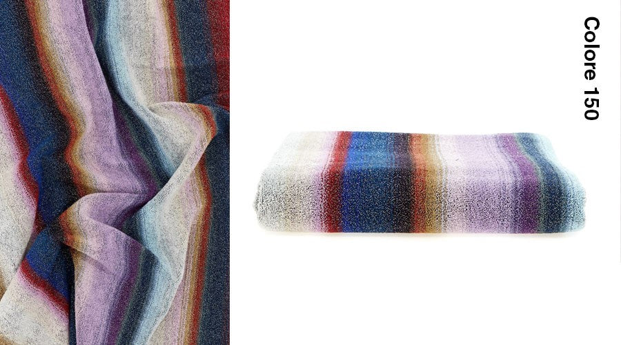 IMissoni Home collezione Clancy, telo mare e accappatoio corto con cappuccio in cotone 90% e 10% fibra Metallizzata, a colpire sono le nuances con lavorazione verticale che disegnano una serie di righe metallizzate in lurex, che...