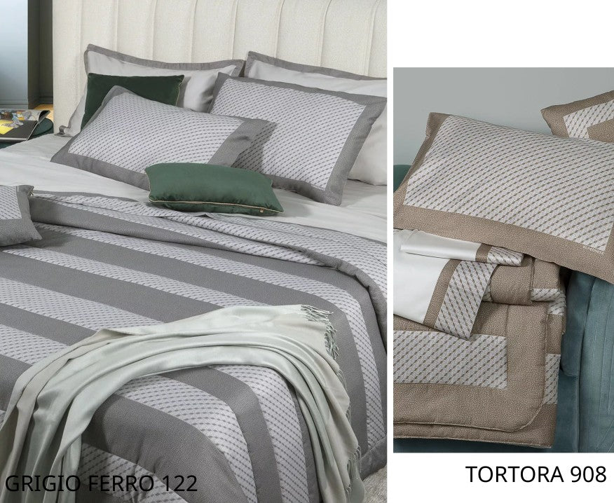 Completo lenzuola in raso di puro cotone 300 T.C in tinta unita con bordo applicato e federe a sacchetto stampato in digitale. Il lenzuolo sotto con angoli è in raso tinta unita. Confezionato in busta....
