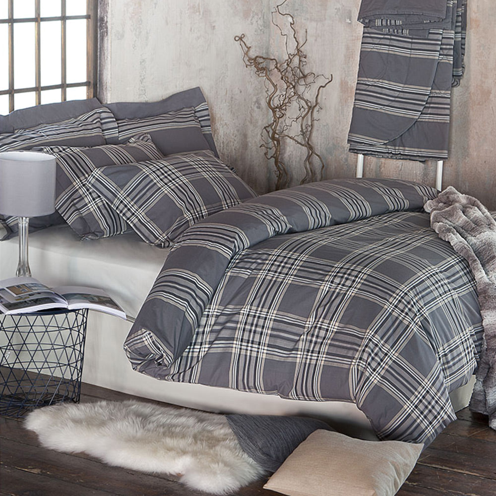 Parure lenzuola scozzesi realizzato in percalle di cotone tinto filo 200 T.C. Il lenzuolo sopra e le federe a 3 volant sono in fantasia scozzese, MisureLenzuolo 200*2901 Federa 3 volant 50*80100% percalle di cotone 200 TC tinto...