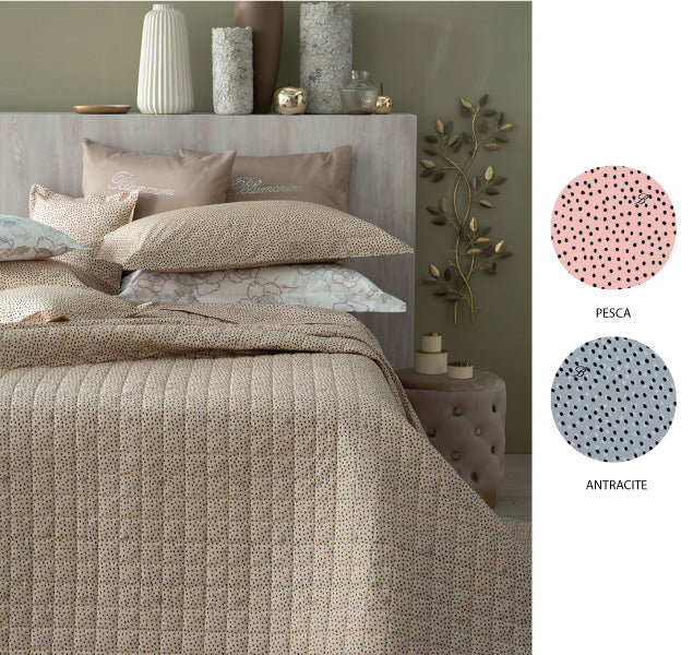 Trapunta leggera double-face realizzata in percalle di cotone 200 T.C. Capo stampato in digitale con motivi geometrici, esaltati dalla trapuntatura a rombi.Rifinitura a mano con angoli stondati. Vesti la tua camera da letto con lo...