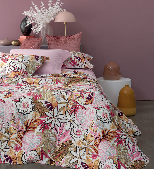Fresco copriletto matrimoniale trapuntato con fantasia stampata. Misure: 270x270 cmTessuto: 100% percalle di cotone 200 TCImbottitura: 100% fibra di poliestere 90 g/mqMade in Italy
