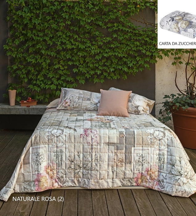 Copriletto trapuntatorealizzato in raso di puro cotone 300 T.C., rifinit ao mano con angoli stondati. La parte sopra è stampata in digitale con disegno piazzato, mentre la parte sotto è in tinta unita. La trapuntatura...