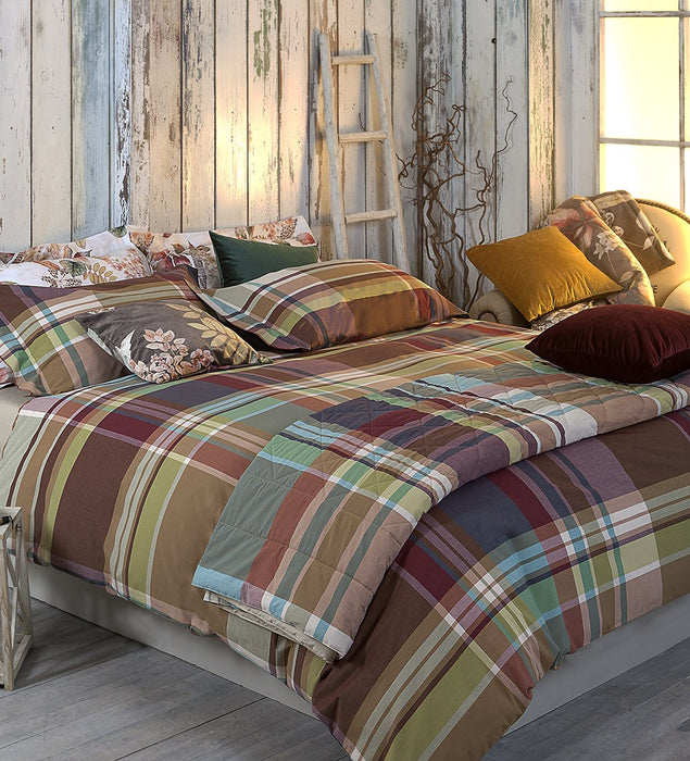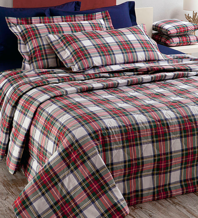 Parure lenzuola scozzesi realizzato in percalle di cotone tinto filo 200 T.C. Il lenzuolo sopra e le federe a 3 volant sono in fantasia scozzese, MisureLenzuolo 250*2902 Federe 3 volant 50*80100% percalle di cotone 200 TC tinto...