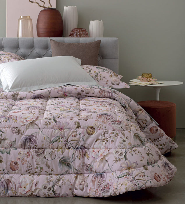 Trapunta Sybil - Un trionfo di ramoscelli e bacche autunnali con Brigitte, la nuova trapunta della Collezione Privè di Somma 1867, stampata in morbido e fine percalle di puro cotone con imbottitura 100% poliestere. Perfetta...
