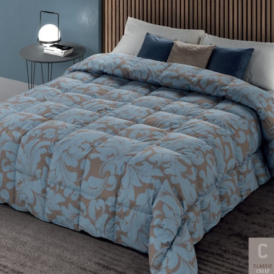 Trapunta in piuma d'oca 100% piumino Silver in falda Imbottitura 225 gr/mq Fodera 100% cotone antipiuma parte esterna stampa digitale. Misura 270*270