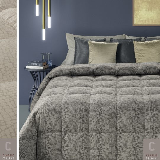Trapunta piumino d'oca 100% Silver Cotone / microfibra stampato e in tinta unita - Unico tessuto a tenuta piuma Imbottitura: 100 Silver -> Piumino Oca 100% 220 gr/mq Tessuto esterno cotone e microfibra poliester Misura 270*260