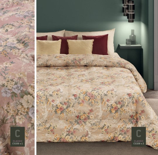 Trapunta sintetica in raso di cotone stampato. Misure 270*260 Imbottitura 320 gr/mq