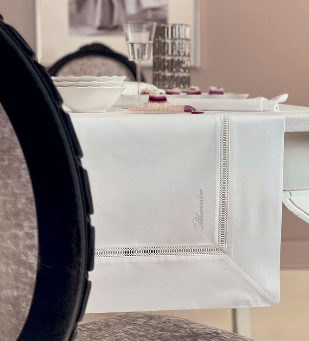 Runner ricamato ricamato a mano, finitura con orlo a cappuccio 2 cmComposizione 100% cotonemisura 50*130