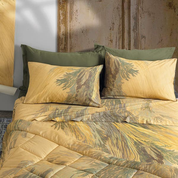 Completo Lenzuolo-copriletto Atlantico - Un disegno fluido ispirato alla flora acquatica con Atlantico, il nuovo completo lenzuolo-copriletto della Collezione Suites, Pittura da Camera di Somma 1867. Tinto e stampato su raso mercerizzato da 120 fili/cmq,...