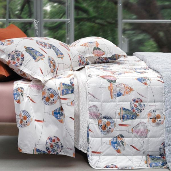 Parure lenzuolo- copriletto composto da lenzuolo stampato effetto copriletto e coppia di federe.Parure Lenzuolo - Copriletto Kyoto - Un trionfo di lanterne di tradizione giapponese con Kyoto, la parure lenzuolo-copriletto matrimoniale in fine percalle di...