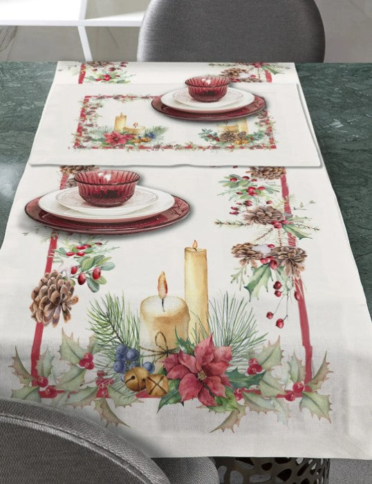 Runner in tessuto riciclato 14% lino 86% Cotone Stampa digitale Misura 50*150 Coonfezione scatola cartone riciclato
