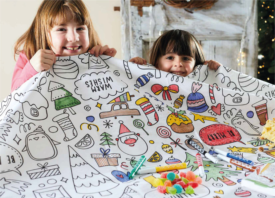 RUNNER IN COTONE / LINO DA COLORARE + 6 PENNARELLI PER TESSUTO Composizione: 80% cotone - 20% lino Tessuto impreziosito con la tipica fiammatura del lino. Stampa digitale su fondo bianco, orlo cordino. Scatola 6...